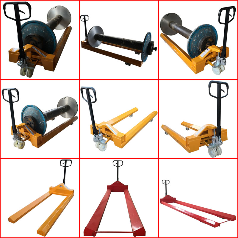 江苏手动液压纱辊搬运叉车 运输纺织上轴盘头车 径轴拖拉地牛推车