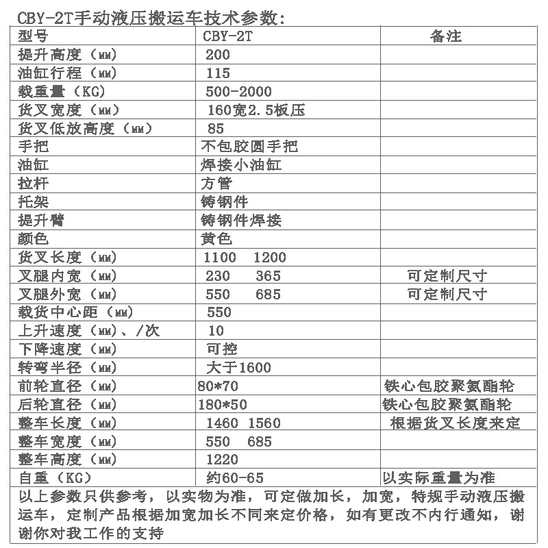 2吨CBY685型手动液压搬运叉车聚氨酯轮尼龙轮550宽薄板托盘手拉车