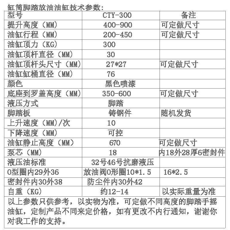 定制300KG缸筒脚踏放油油缸 液压千斤顶 行程400mm 堆高车提升顶